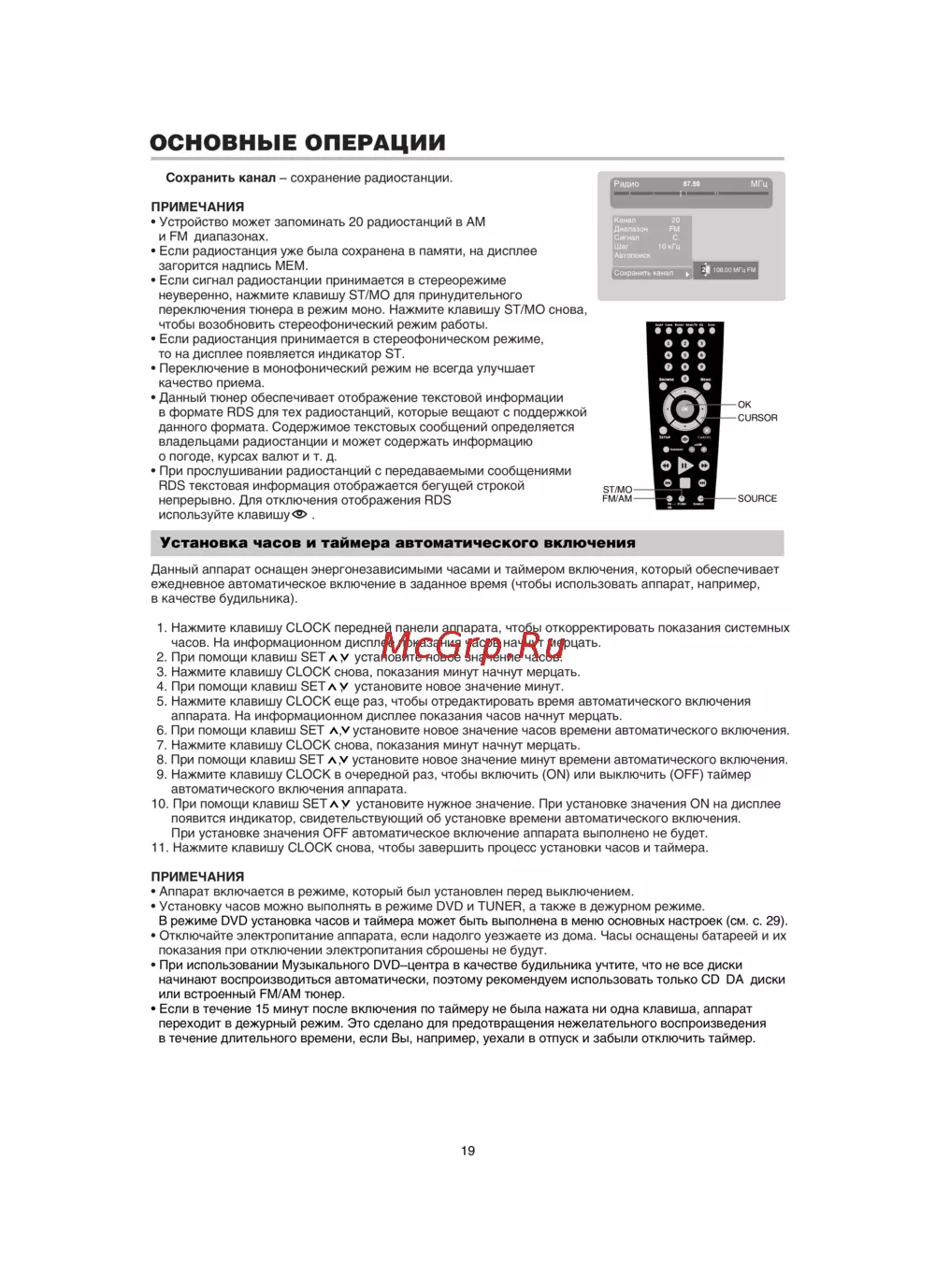 • Установку часов можно выполнять в режиме DVD и TUNER, а также в дежурном режиме.