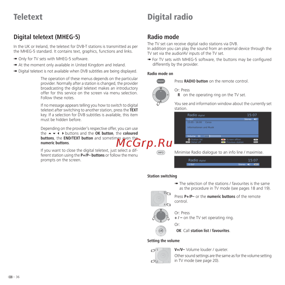 - Starting and ending epg radio mode switched on if not press the radio button p.37