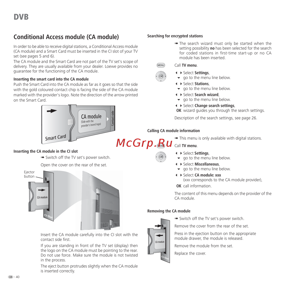 (CA module) and a Smart Card must be inserted in the CI slot of your TV
