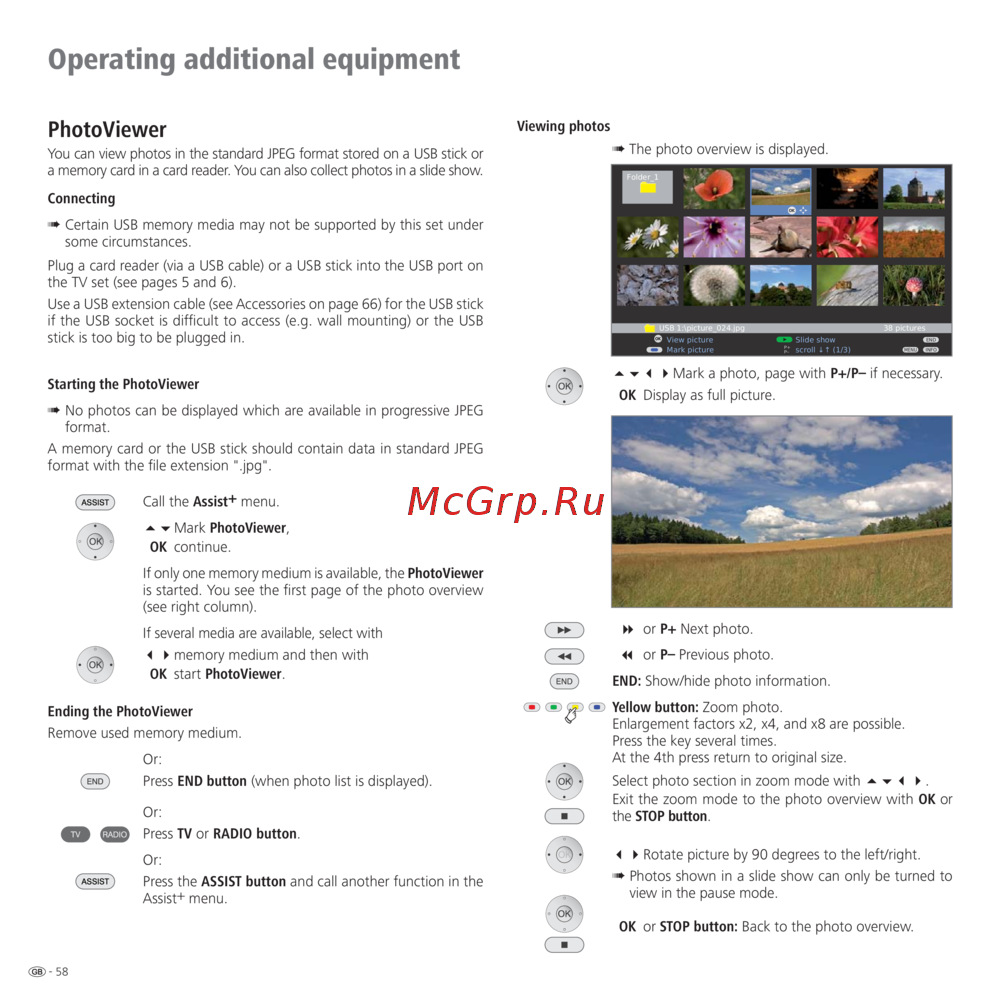 Узнайте, как просматривать фотографии в формате JPEG на телевизоре через USB-накопитель или картридер. Подробные инструкции по запуску и управлению PhotoViewer.