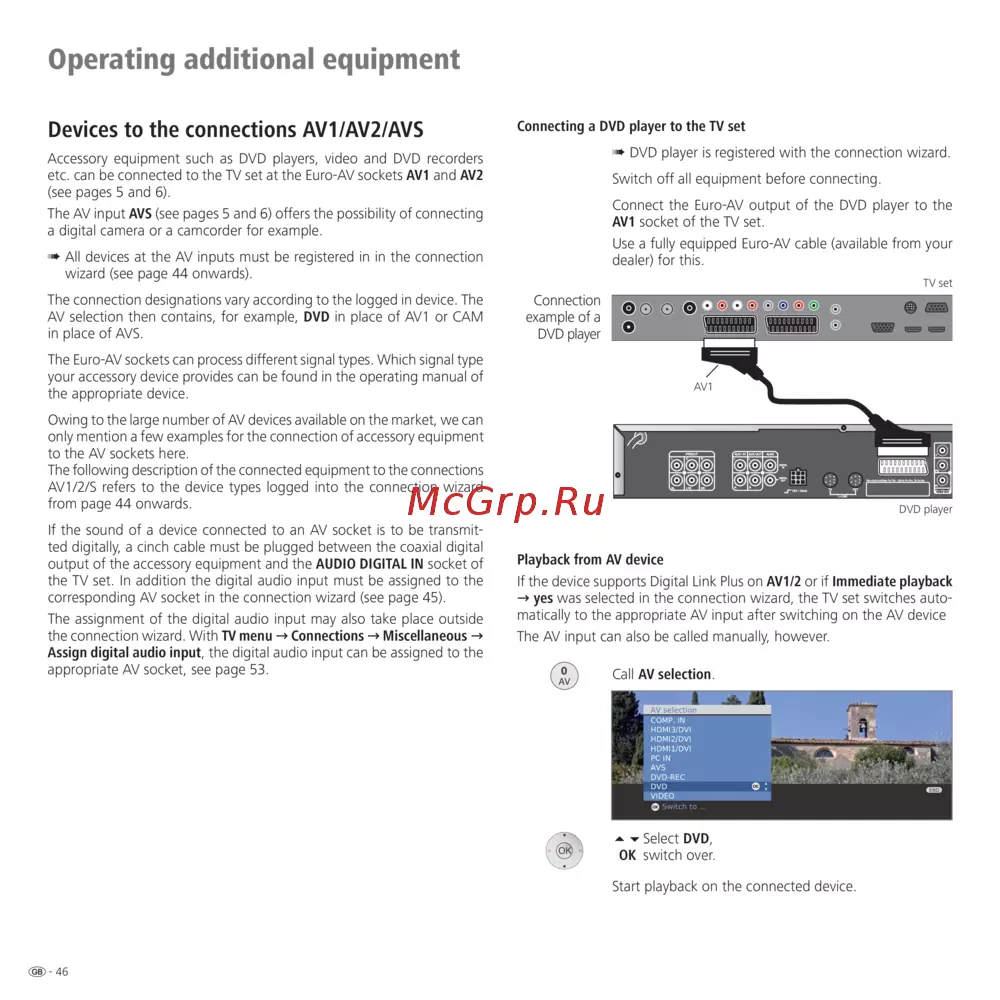 - The selection of the av inputs is the same as in tv mode see pages 18 and 19 p.37