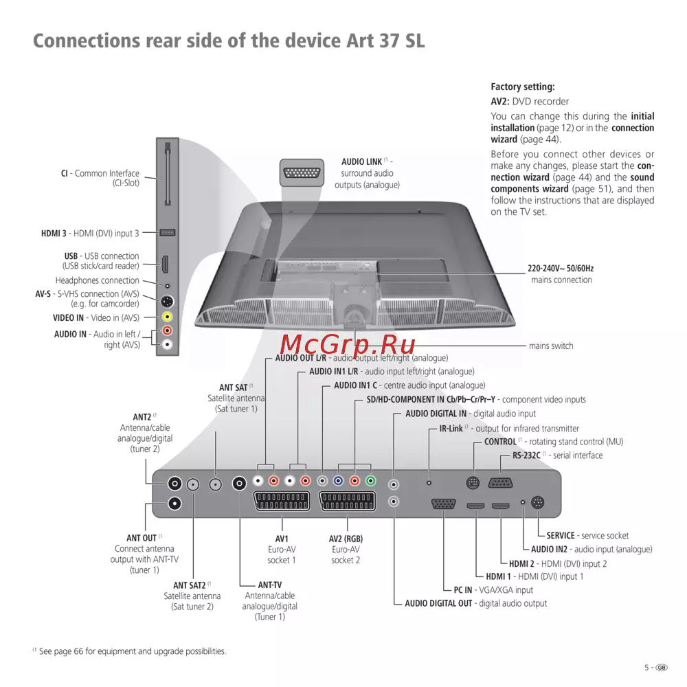 - The accessory equipment should be connected to the tv set with the power off disconnected from the mains see also the instructions in the operating manual of the equipment to be connected p.44