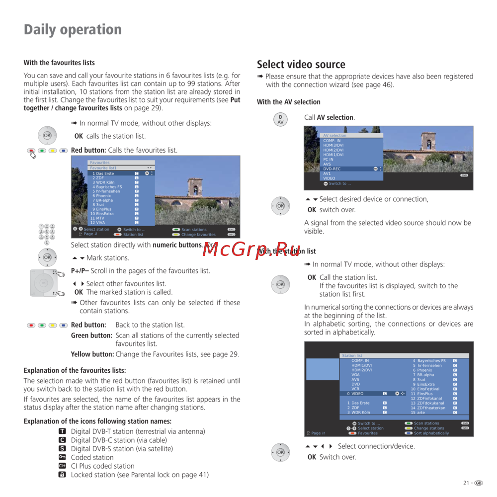 You can save and call your favourite stations in 6 favourites lists (e.g. for