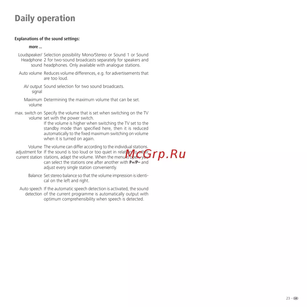 Explanations of the sound settings: