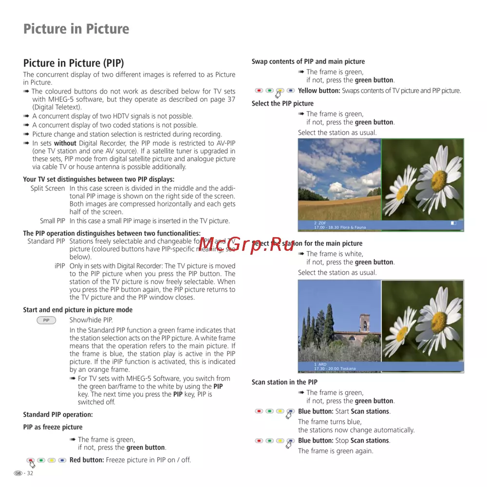 picture (coloured buttons have PIP-specific meaning, see