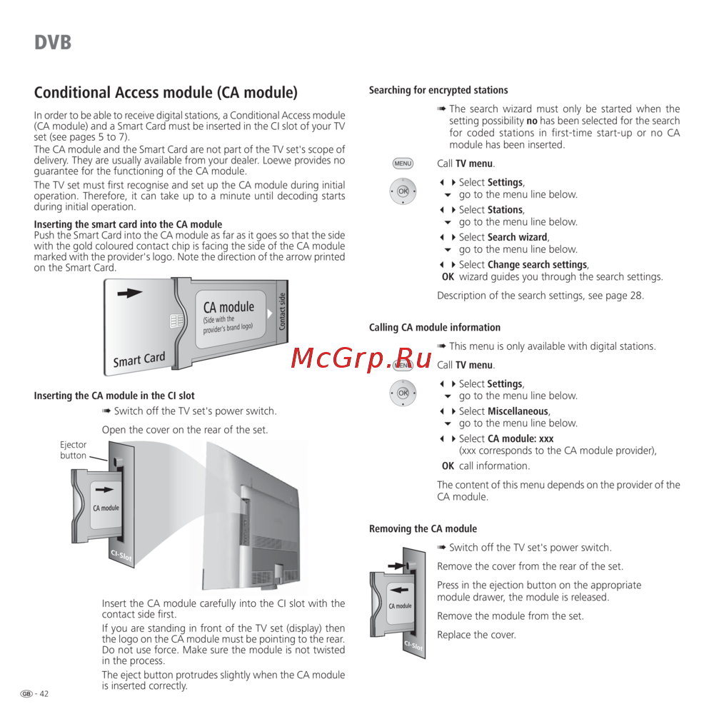 (CA module) and a Smart Card must be inserted in the CI slot of your TV