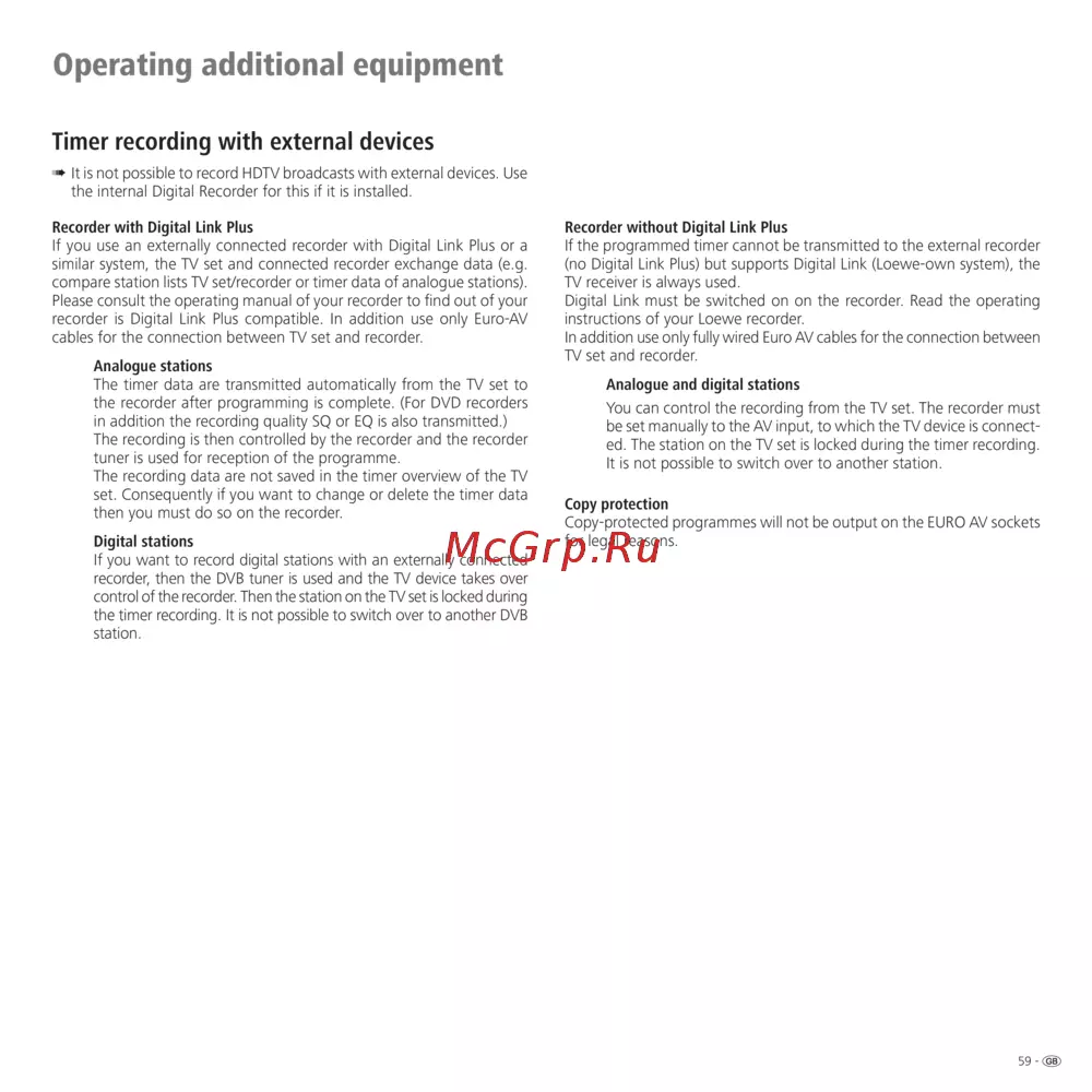 - Timer recording with external devices p.59