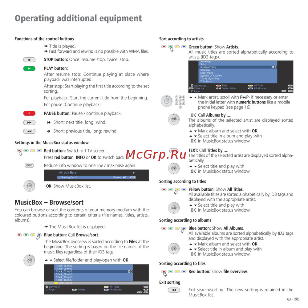- Select title scroll with p p if necessary ok the play list is played in the musicbox status window from the marked title p.64