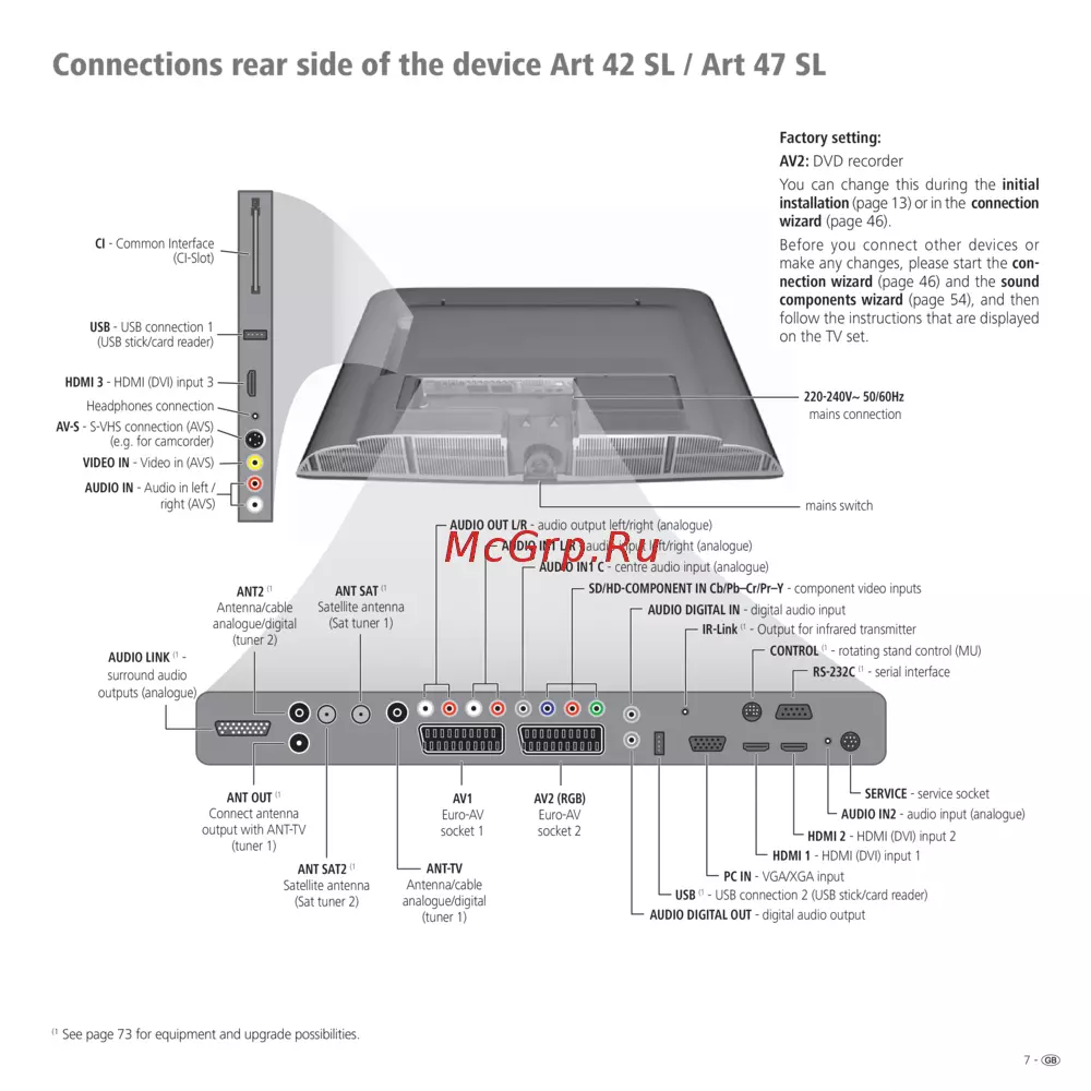- Before you connect other devices or make any changes please start the connection wizard page 46 and the sound components wizard page 54 and then follow the instructions that are displayed on the tv set p.5