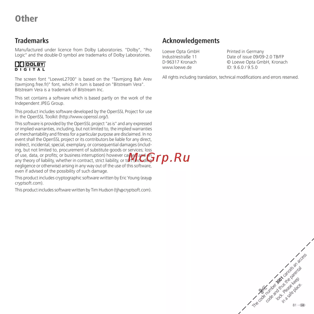 Loewe Art 32 SL Full-HD+ 100 — информация о лицензиях и программном обеспечении продукта [81/82]