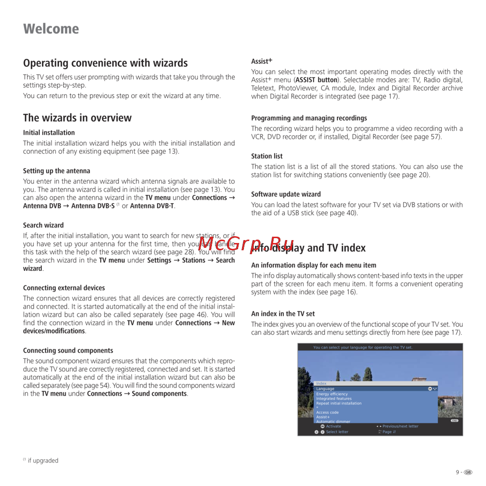 - Before you connect other devices or make any changes please start the connection wizard page 46 and the sound components wizard page 54 and then follow the instructions that are displayed on the tv set p.5