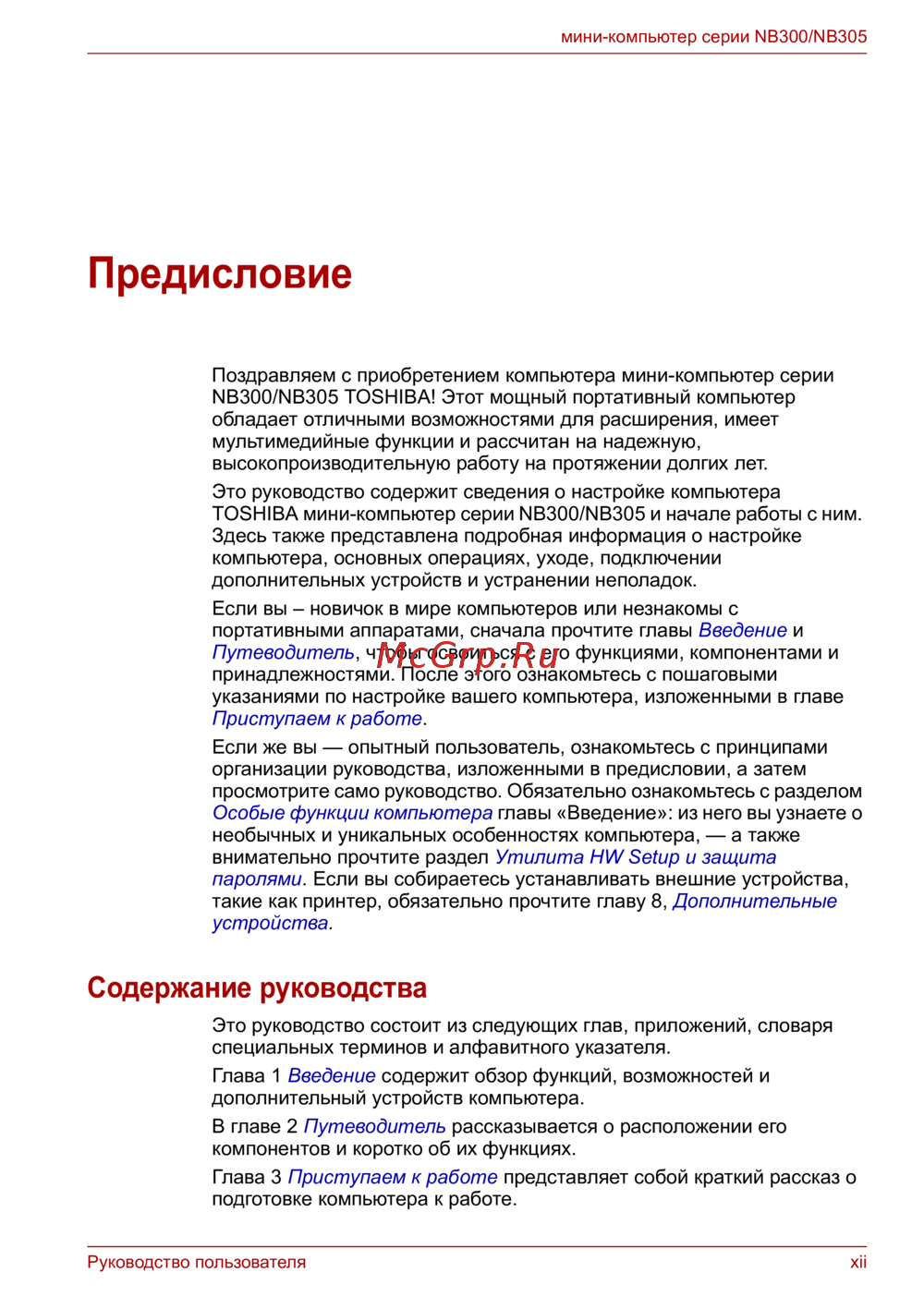 TOSHIBA мини-компьютер серии NB300/NB305 и начале работы с ним.