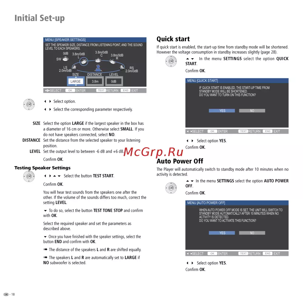SET THE SPEAKER SIZE, DISTANCE FROM LISTENING POINT, AND THE SOUND
