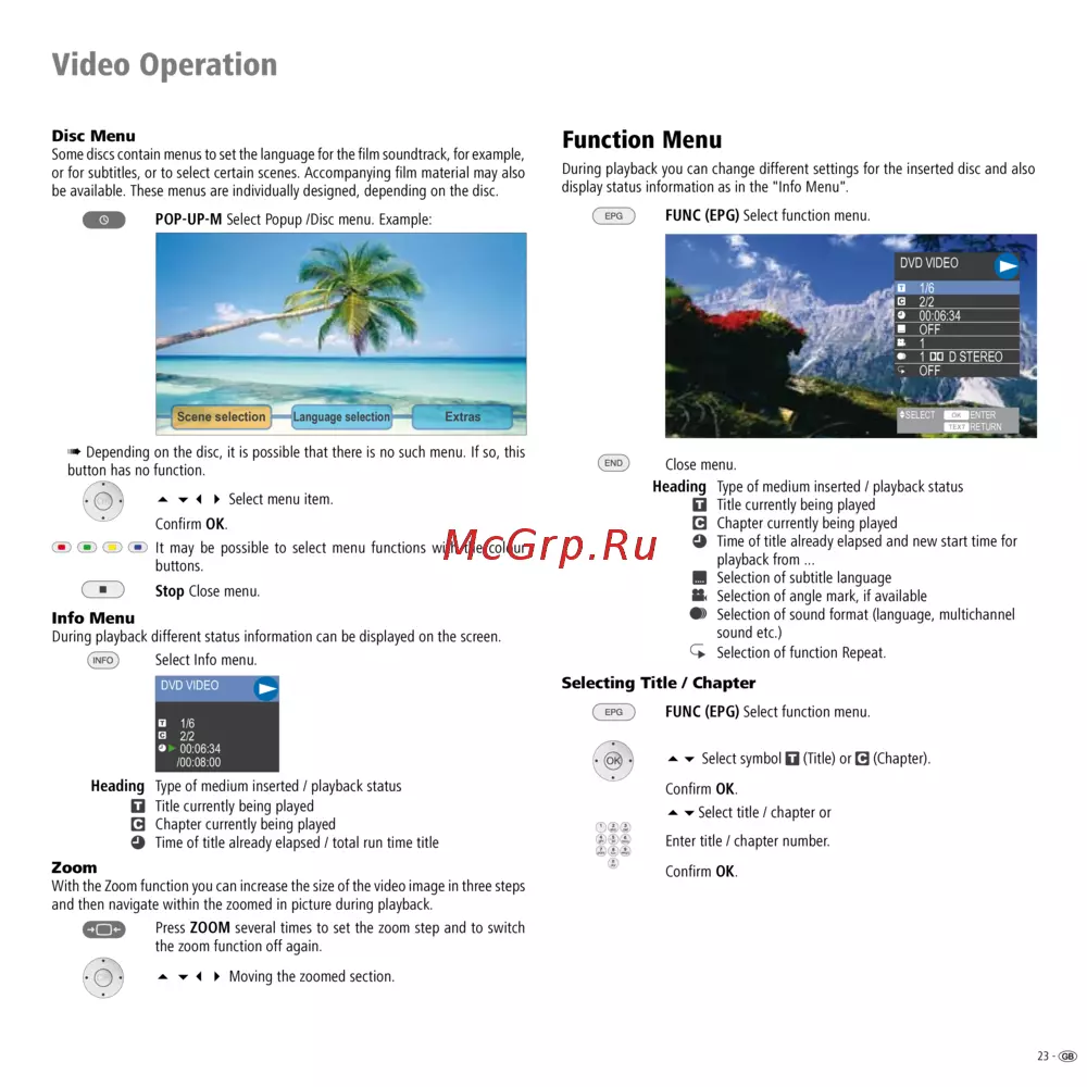 Loewe BluTech Vision — управление меню диска и функциями воспроизведения видео [23/33]