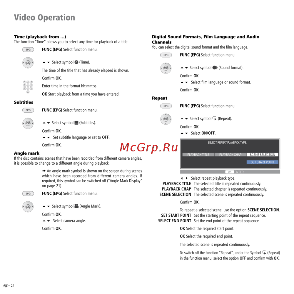 PLAYBACK CHAP The selected chapter is repeated continuously.