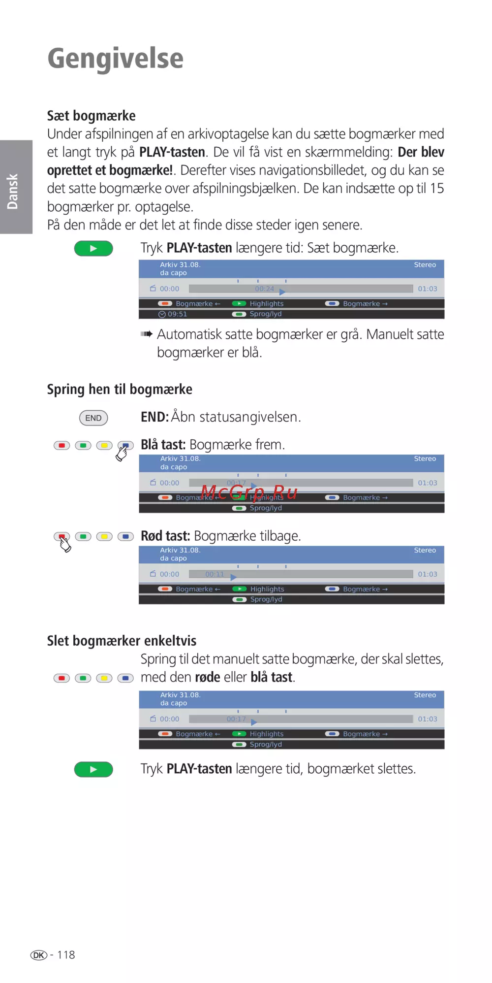Loewe MovieVision DR+ — sådan sætter du bogmærker under afspilning af optagelser [118/170]