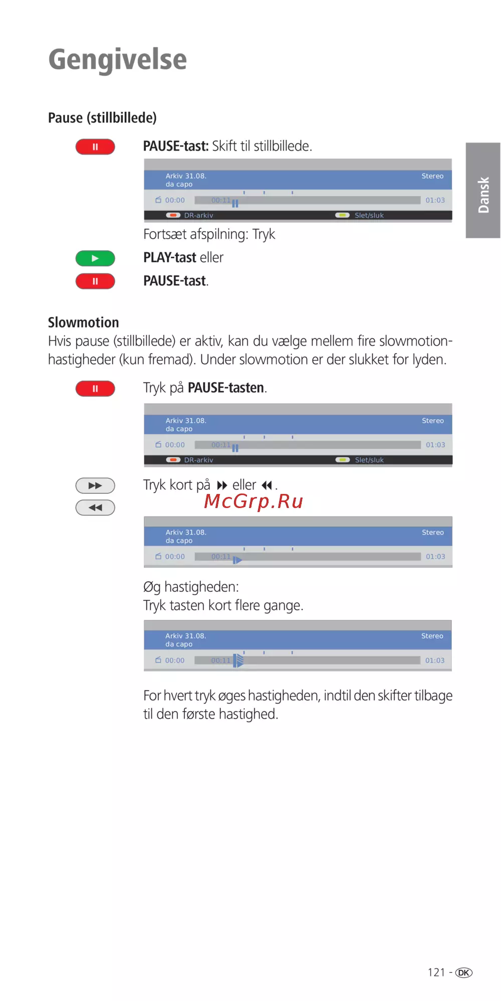 - Bei aktiver pause standbild können sie auf vier zeitlupen geschwindigkeiten schalten während der zeitlupe ist kein ton hörbar p.13