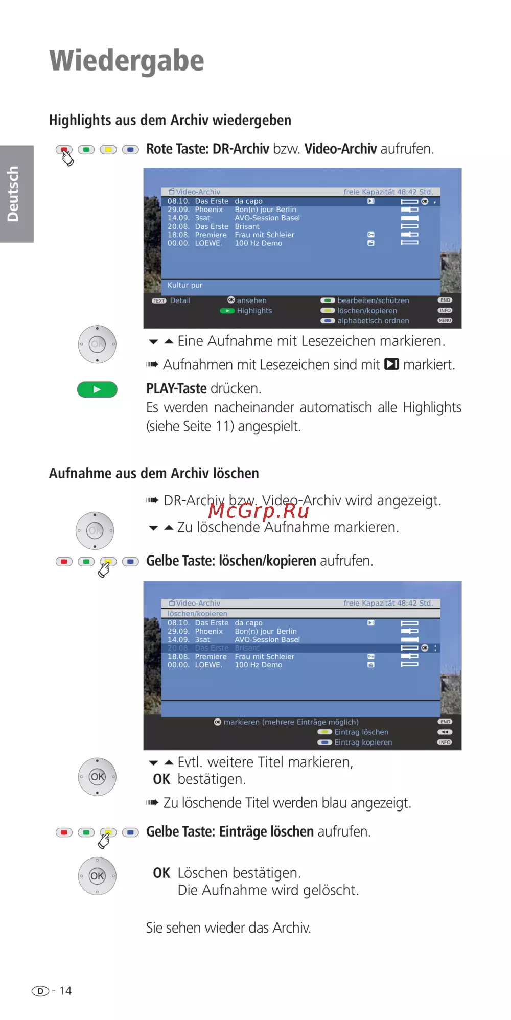 Rote Taste: DR-Archiv bzw. Video-Archiv aufrufen.