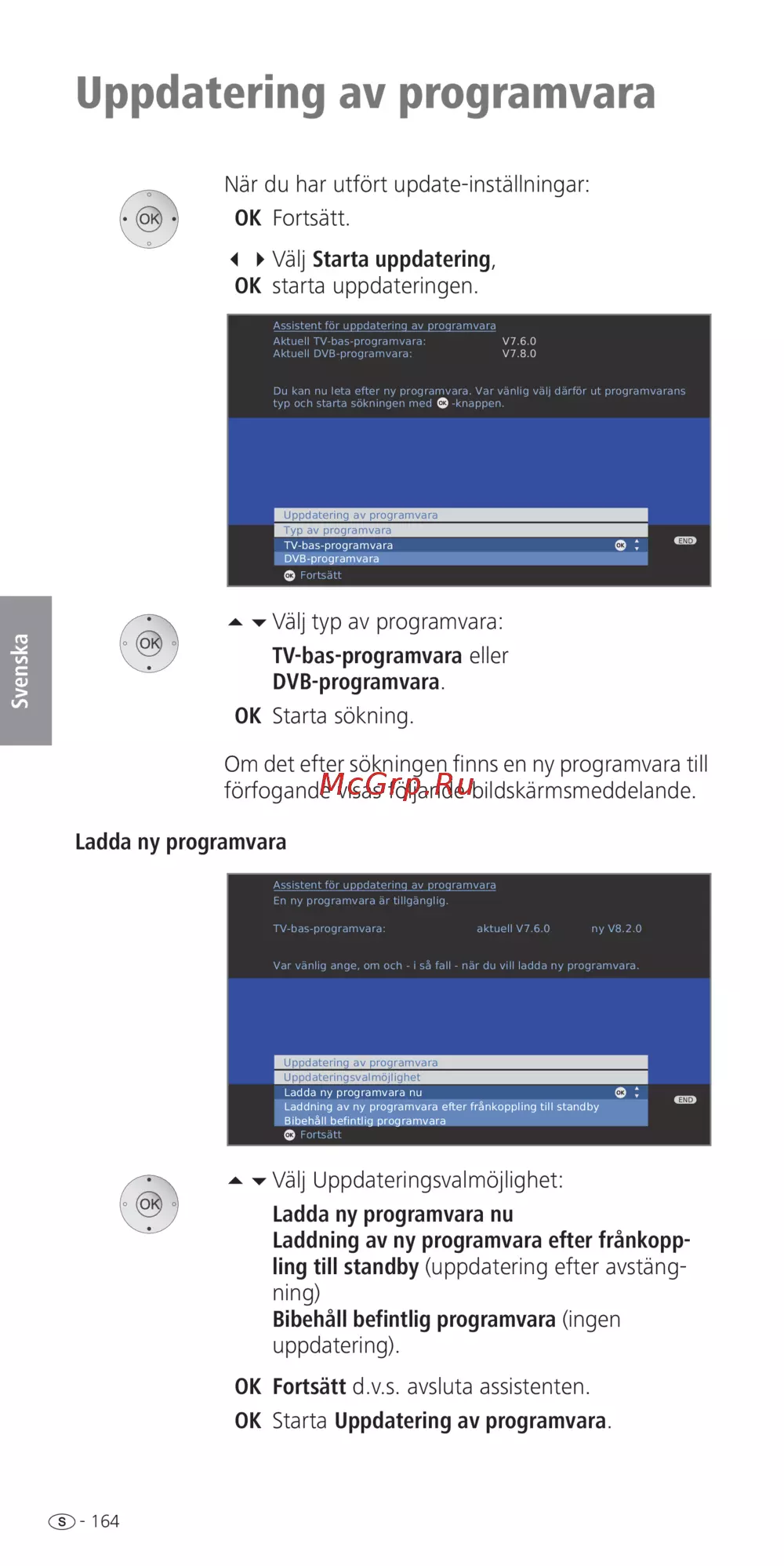 - Usb och dvb t ny programvara söks först via usb därefter via dvb t digital markbunden överföring p.163