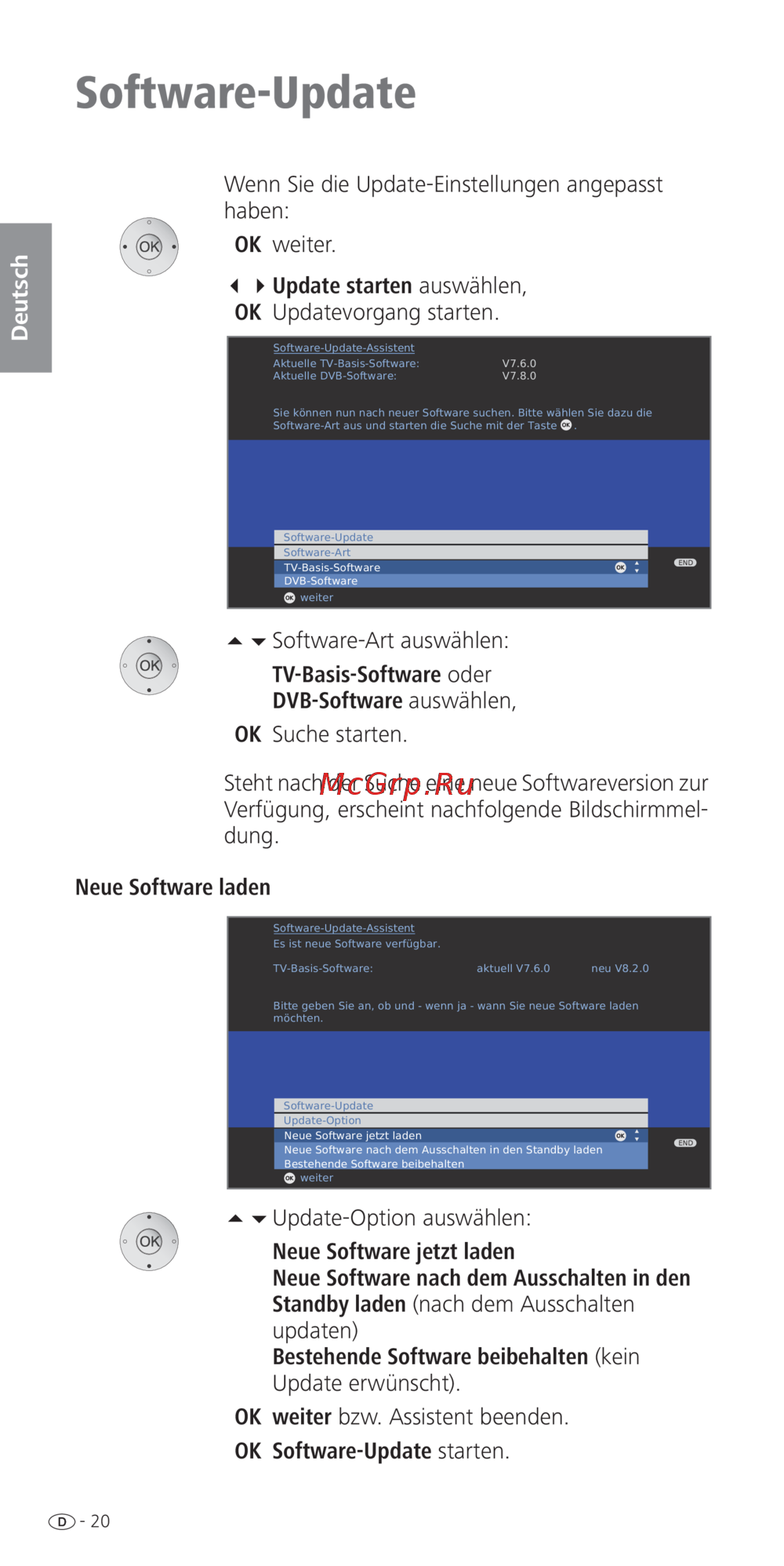 Erfahren Sie, wie Sie Software-Updates für Ihre TV-Basis- und DVB-Software durchführen. Schritt-für-Schritt-Anleitung zur Auswahl und Installation neuer Softwareversionen.