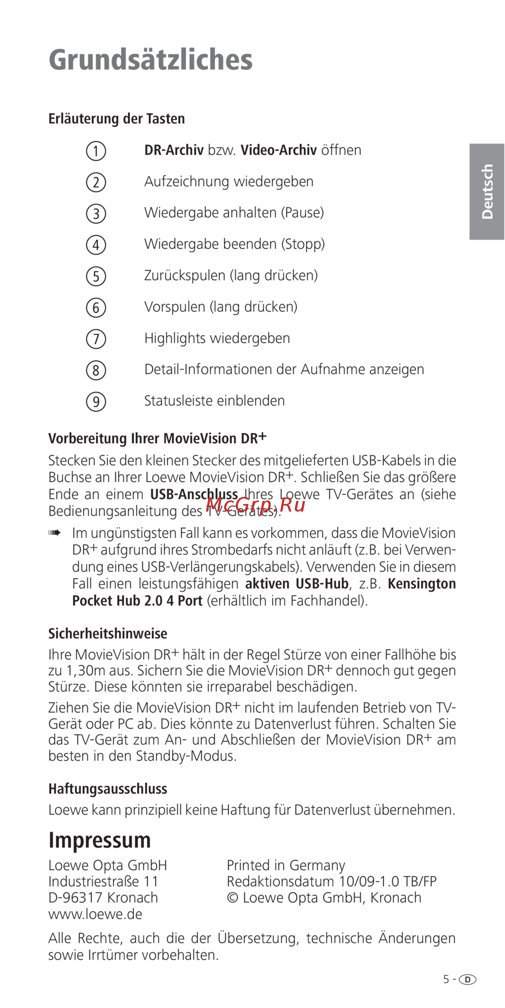 Loewe MovieVision DR+ — anleitung zur Nutzung von Video-Archiven und USB-Verbindungen [5/170]