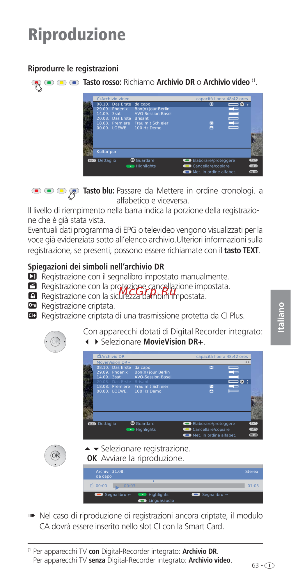 Loewe MovieVision DR+ — guida alla riproduzione e gestione delle registrazioni video [63/170]
