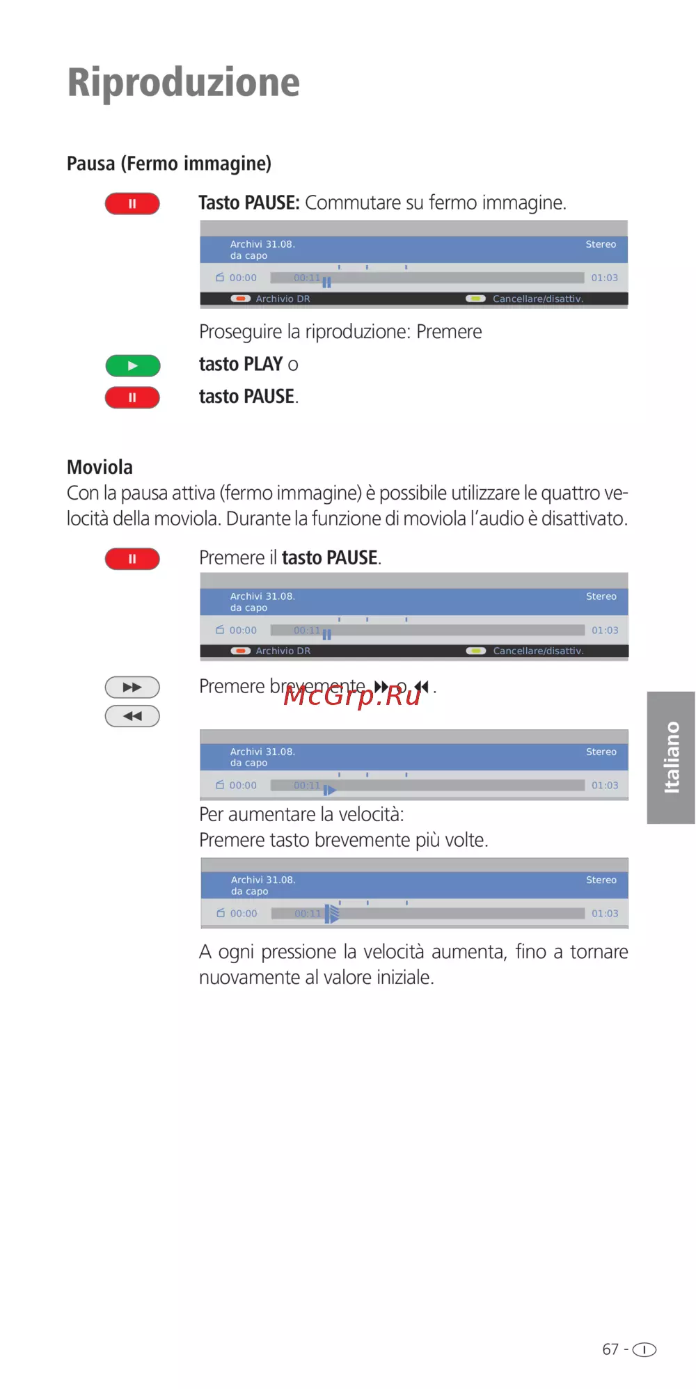 Loewe MovieVision DR+ [67/170] Moviola con la pausa attiva fermo immagine è possibile utilizzare le quattro ve locità della moviola durante la funzione di moviola l audio è disattivato