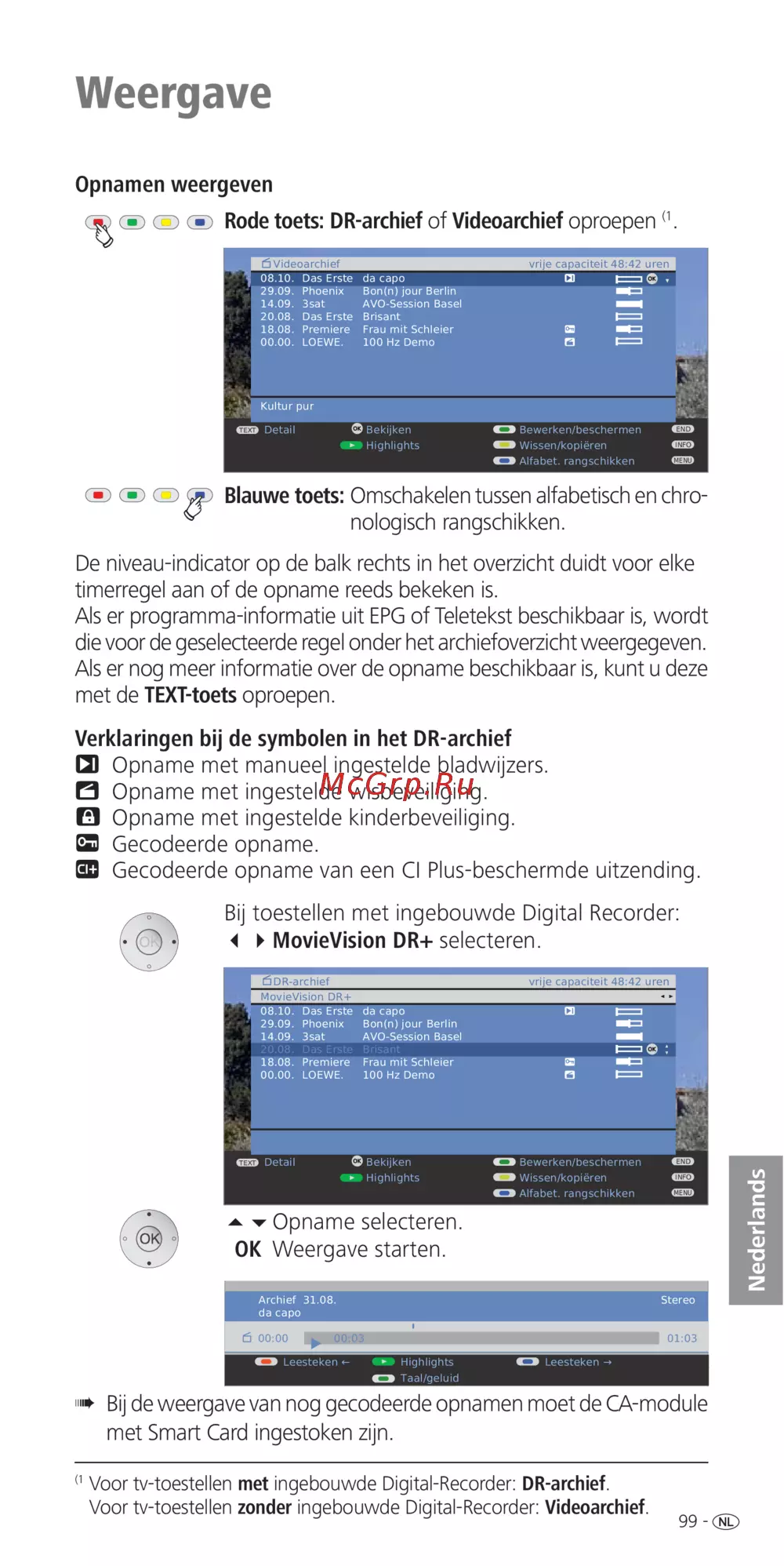 Voor tv-toestellen met ingebouwde Digital-Recorder: DR-archief.