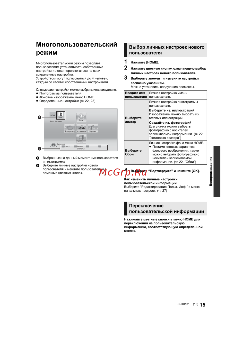 Panasonic DMP-BDT460 — многопользовательский режим: настройка и управление пользователями [15/72]