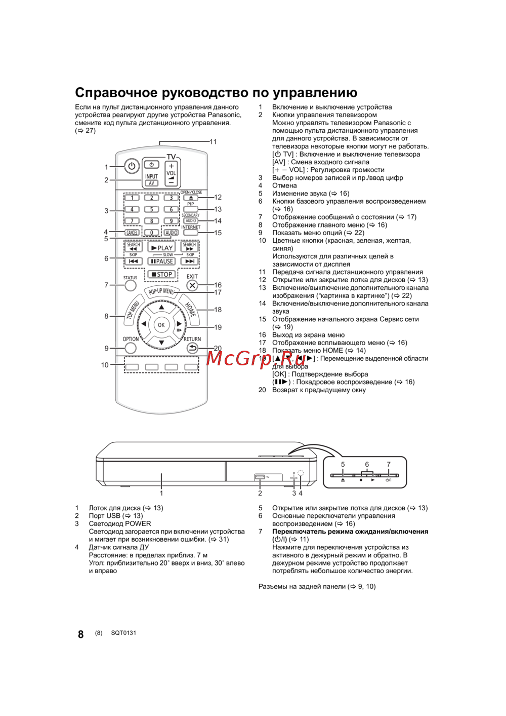 Panasonic DMP-BDT460 — справочное руководство по управлению устройством [8/72]
