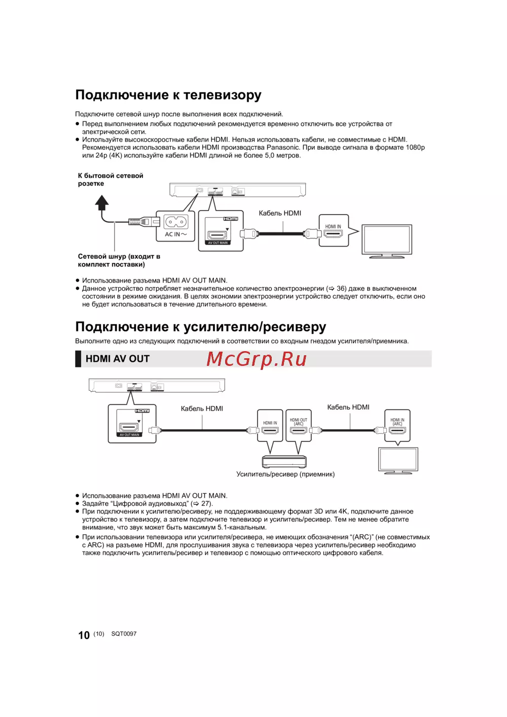устройство к телевизору, а затем подключите телевизор и усилитель/ресивер. Тем не менее обратите
