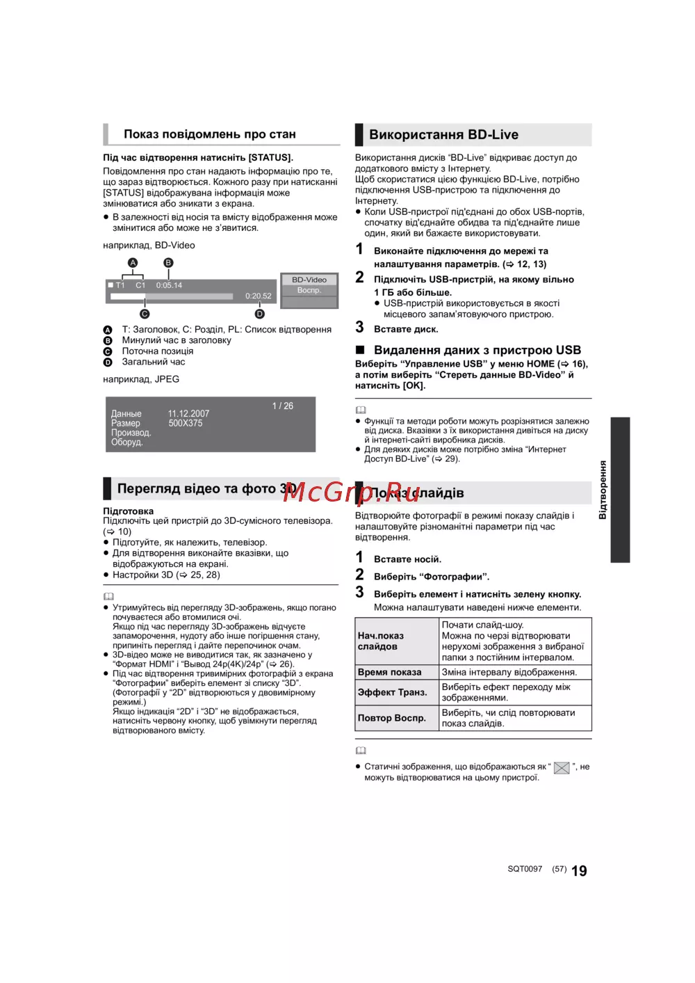 Досліджуйте можливості відтворення відео та фотографій, налаштуйте параметри 3D та BD-Live. Отримайте корисні поради для оптимального використання вашого пристрою.