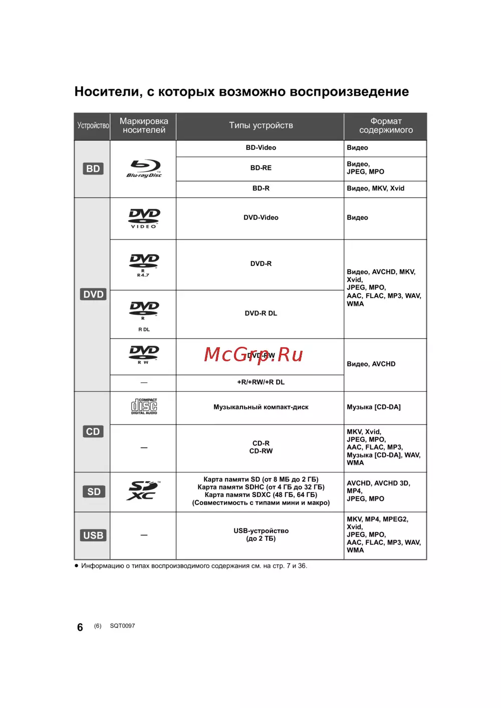 - Носители с которых возможно воспроизведение p.6