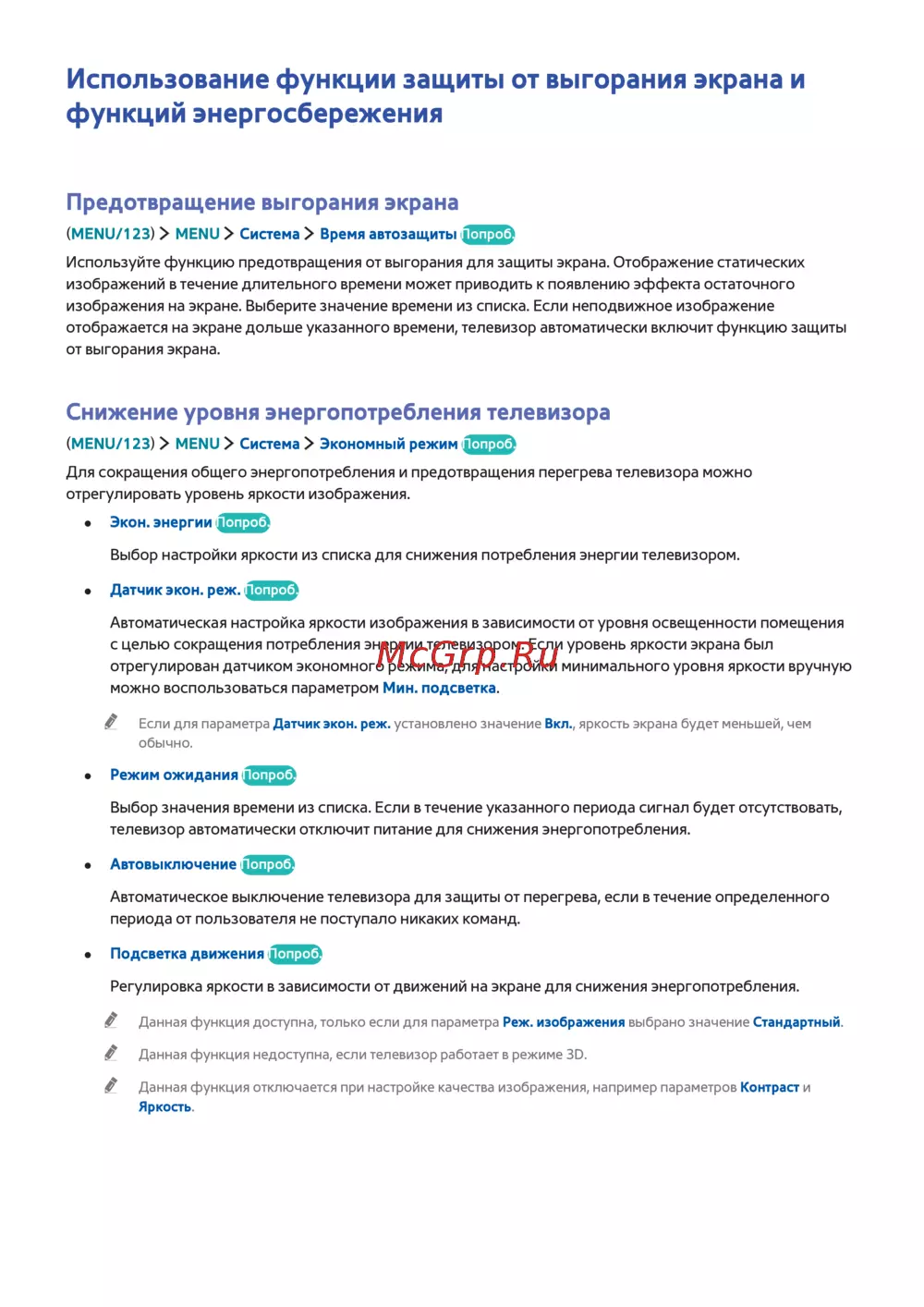 Samsung UE85JU7000UX — как защитить экран телевизора от выгорания и снизить энергопотребление [134/194]