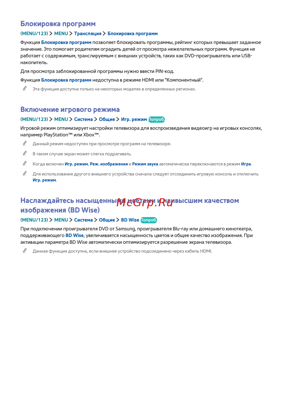 Samsung UE85JU7000UX — блокировка программ и игровые режимы для телевизоров [143/194]