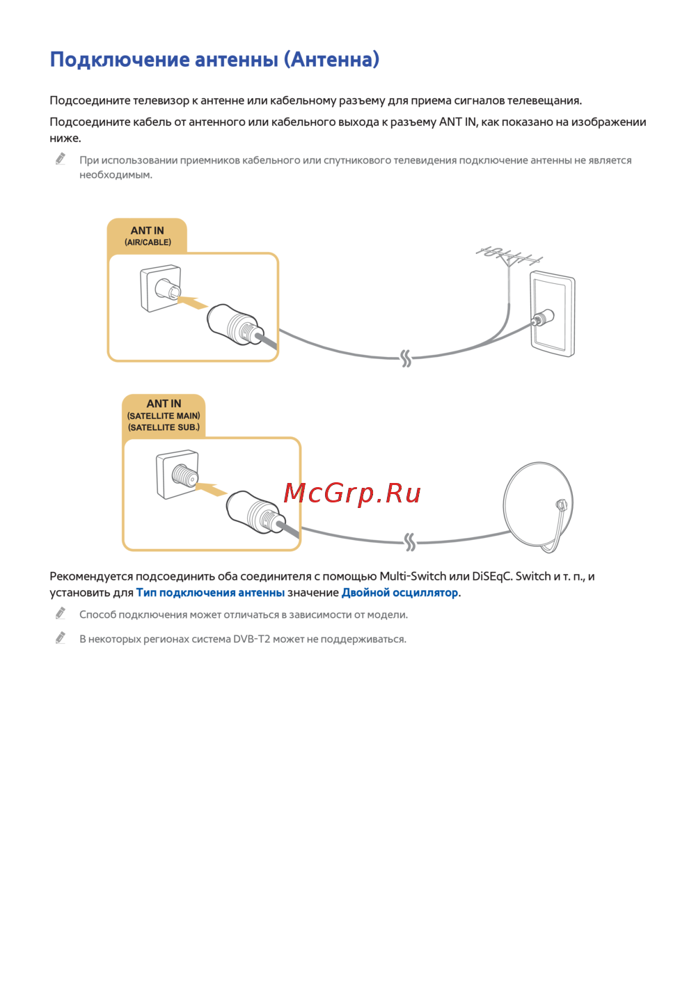 установить для Тип подключения антенны значение Двойной осциллятор.
