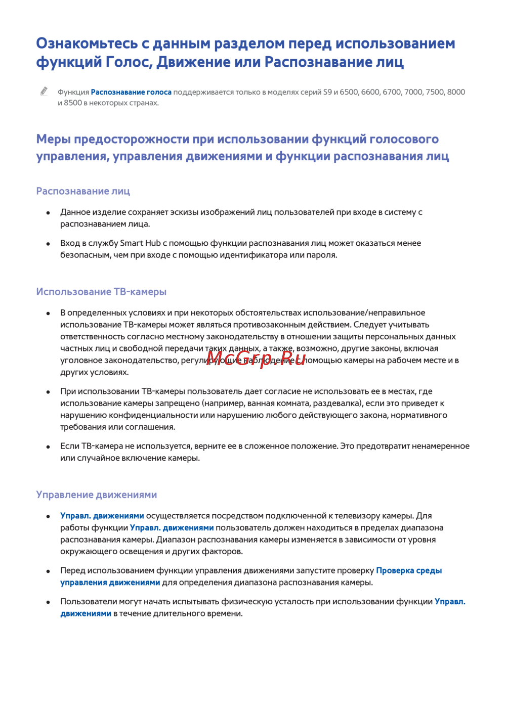 Перед использованием функций голосового управления, управления движениями и распознавания лиц ознакомьтесь с мерами предосторожности и рекомендациями для безопасного использования.
