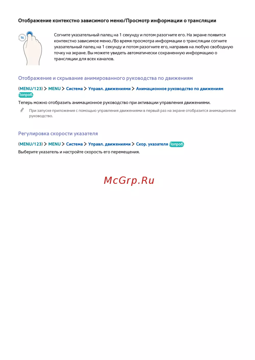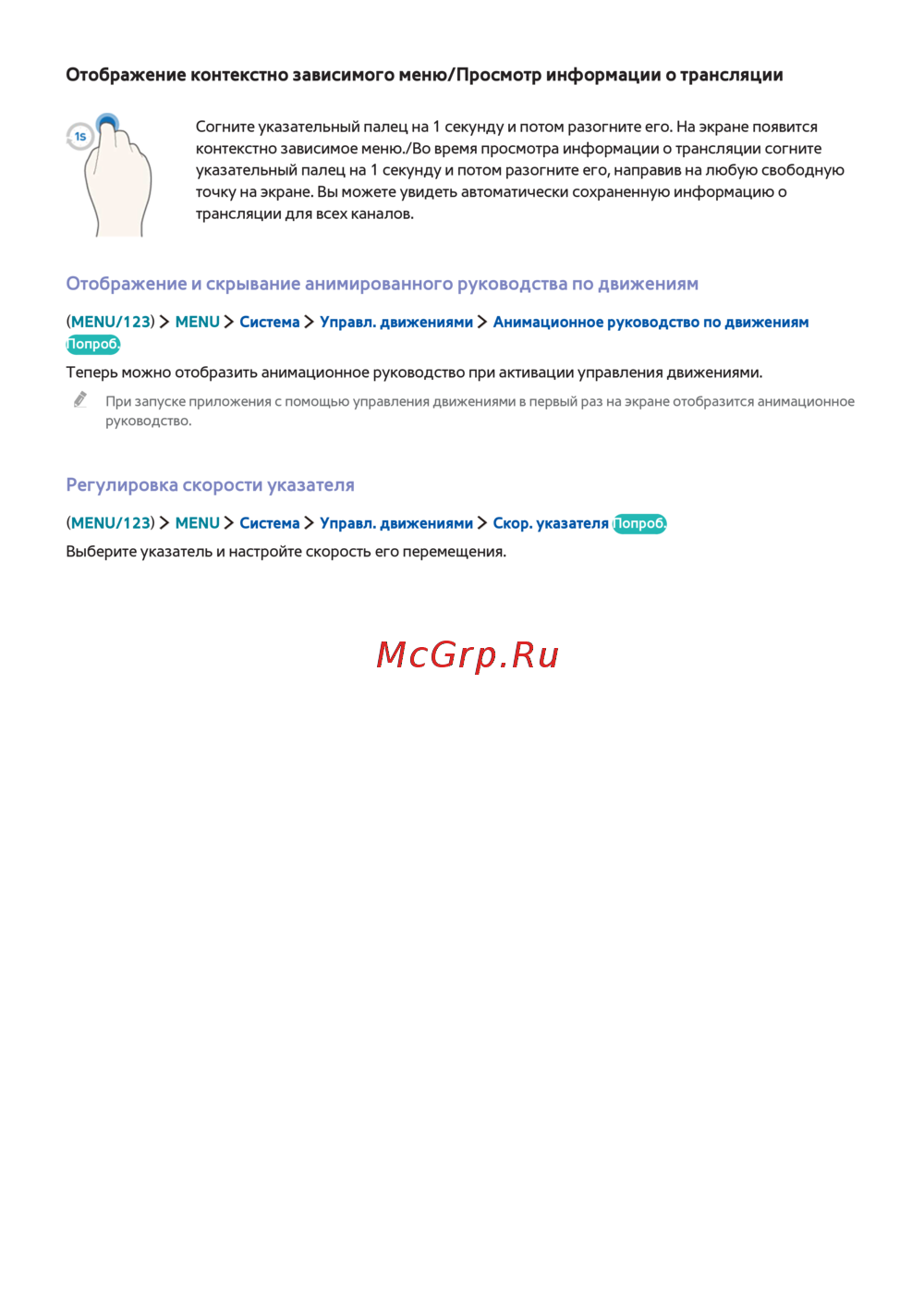 Samsung UE85JU7000UX — управление движениями: контекстное меню и настройки указателя [79/194]