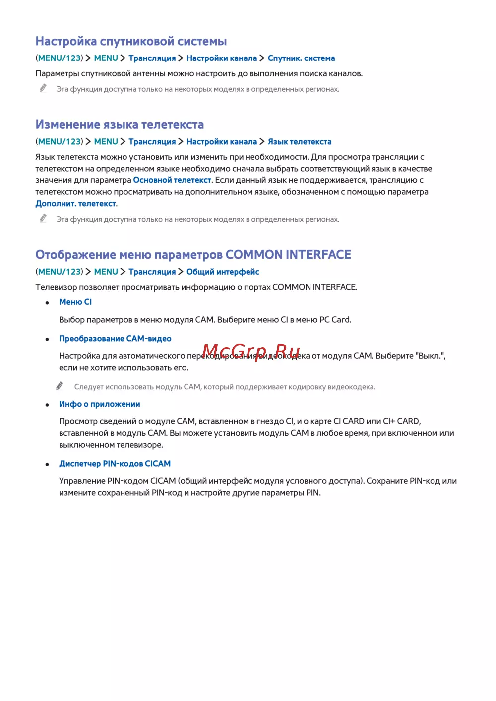 ![Samsung UE85JU7000UX [111/194] Отображение меню параметров common interface](/views2/1129279/page111/bg6f.png)