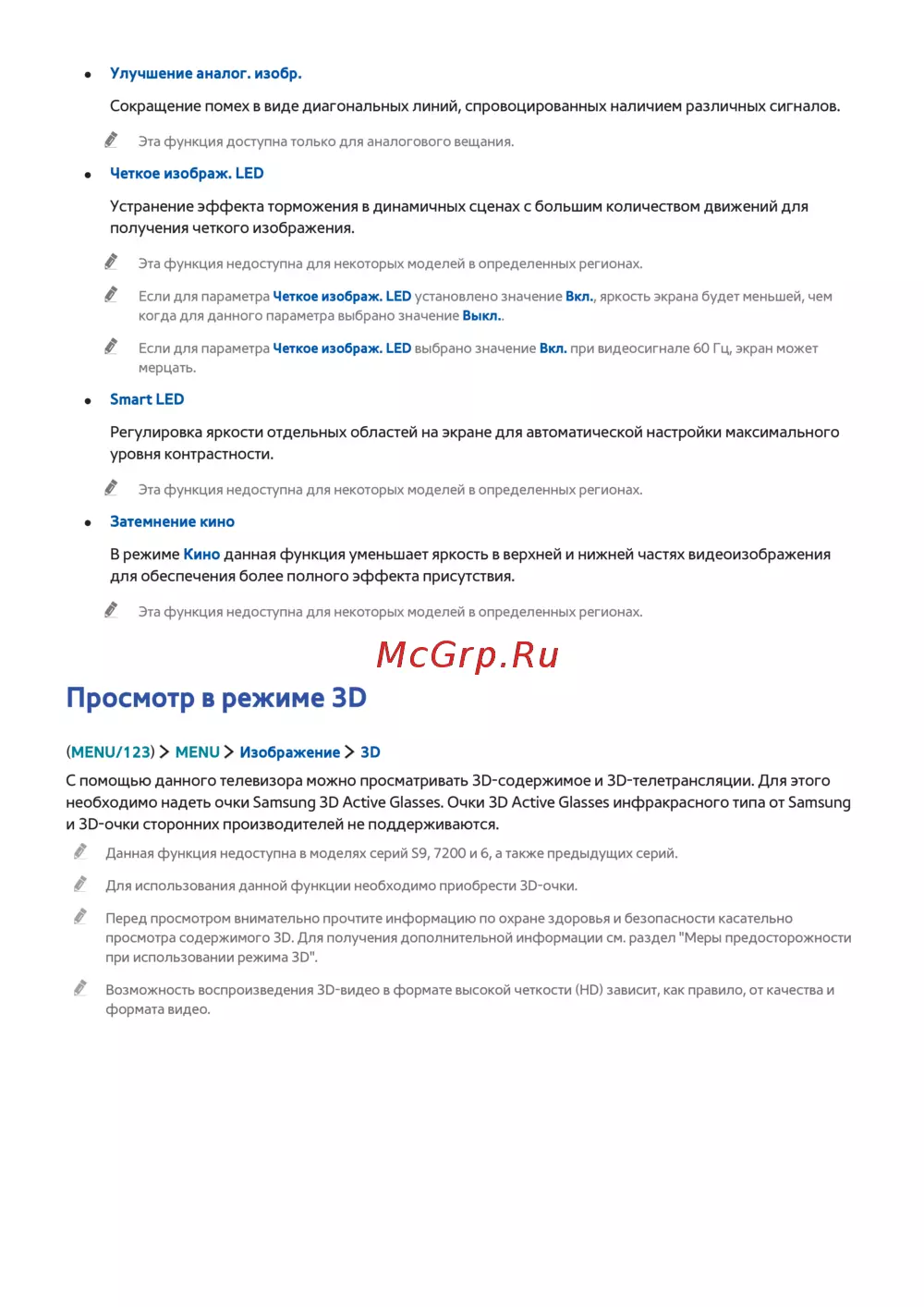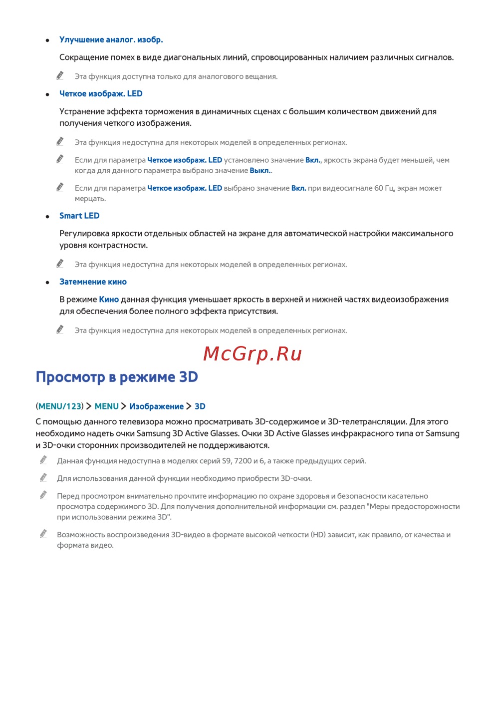 - Функция pip не может быть использована пока активна функция smart hub или 3d p.184