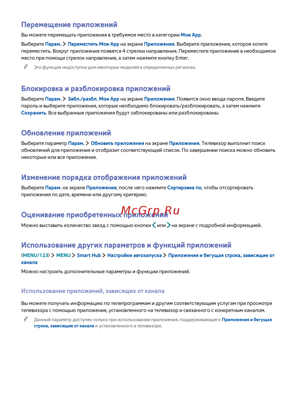 Узнайте, как перемещать, блокировать и обновлять приложения на вашем телевизоре. Настройте порядок отображения и оцените приобретенные приложения для удобства использования.