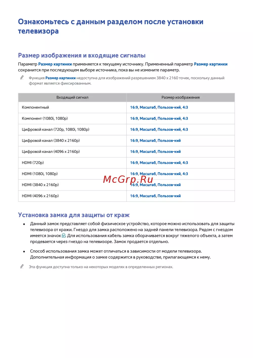 - Способ использования замка может отличаться в зависимости от модели телевизора дополнительная информация о замке содержится в руководстве прилагающемся к нему p.185