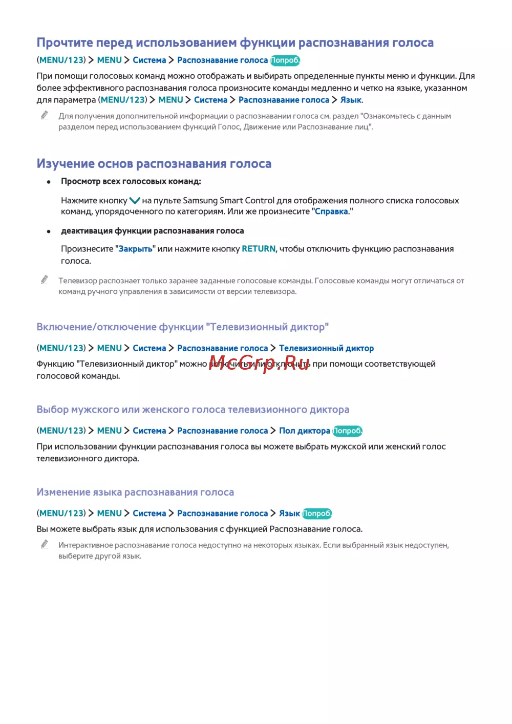 Телевизор распознает только заранее заданные голосовые команды. Голосовые команды могут отличаться от