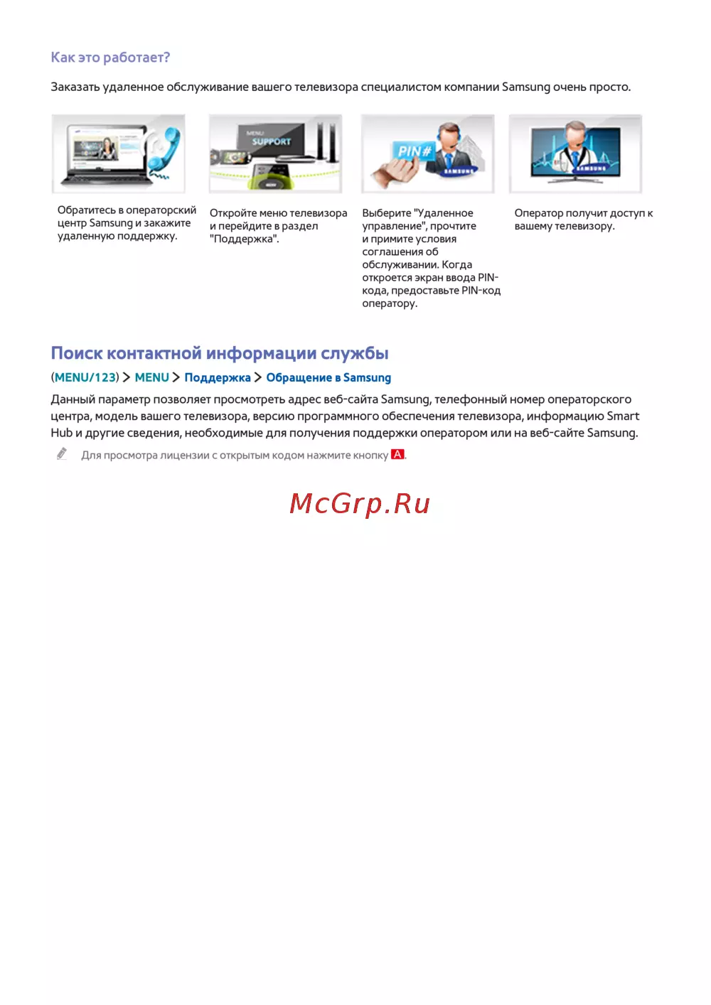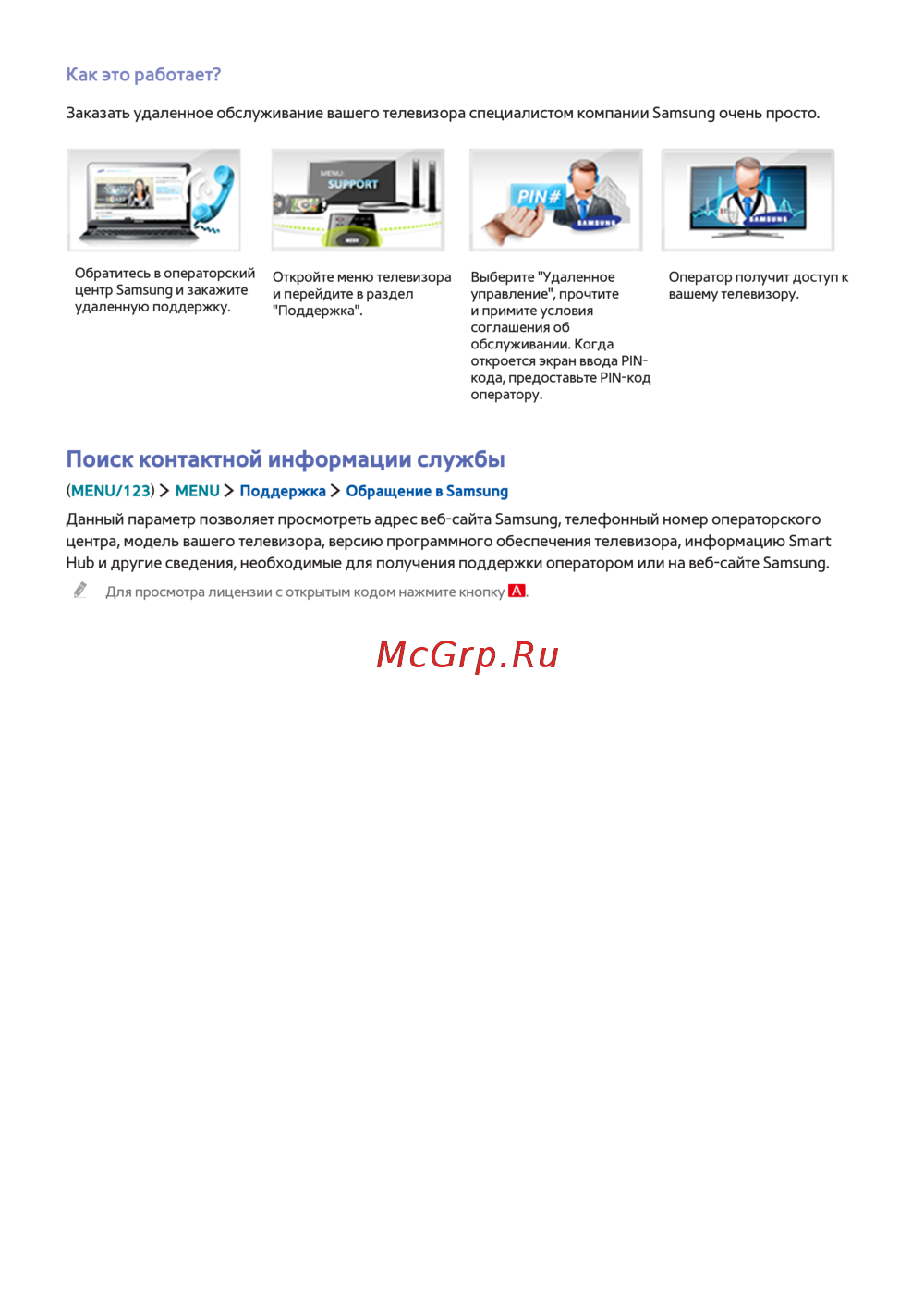 (MENU/123) MENU Поддержка Обращение в Samsung
