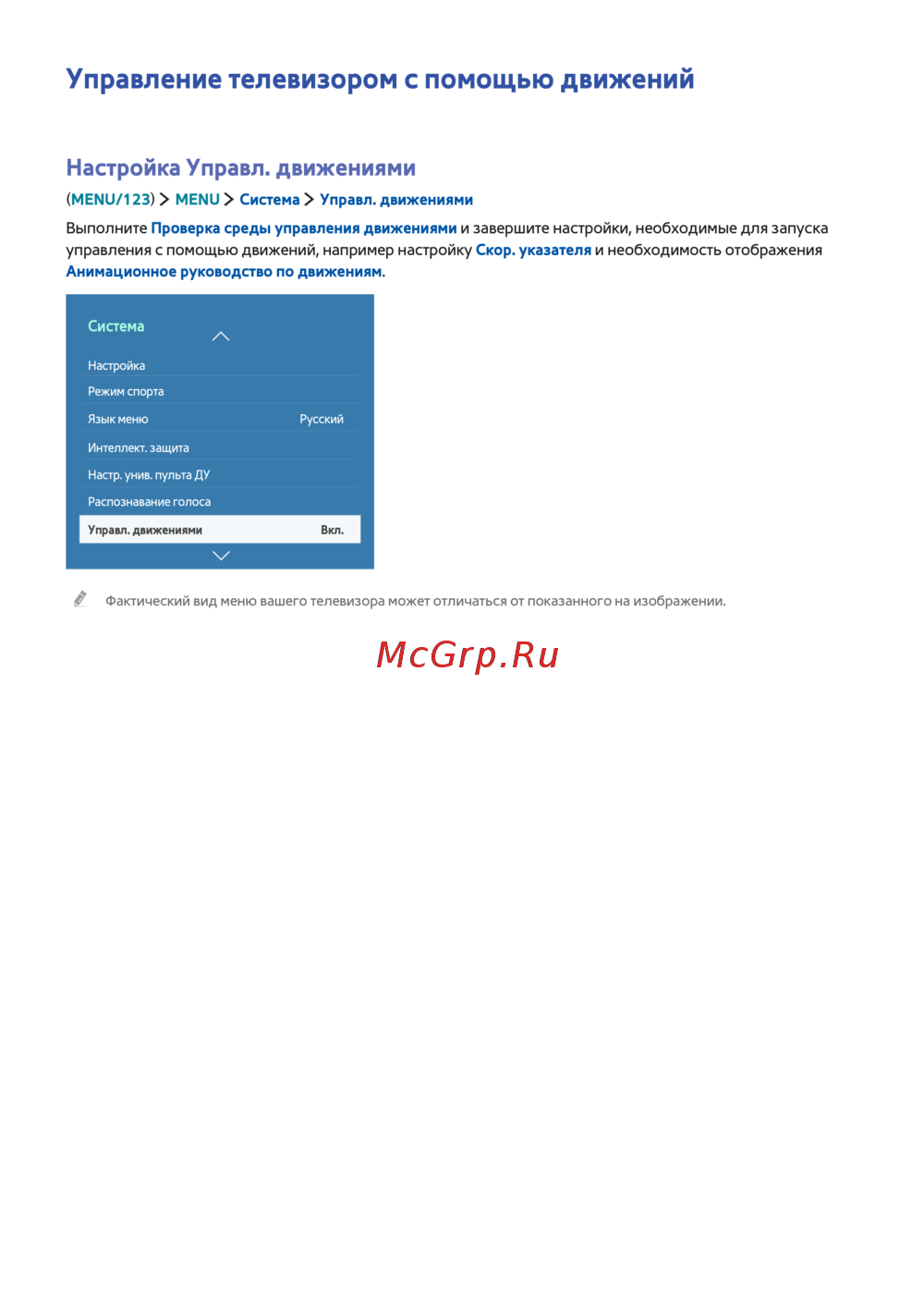 - При использовании функции управления движениями избегайте воздействия прямых солнечных лучей p.175