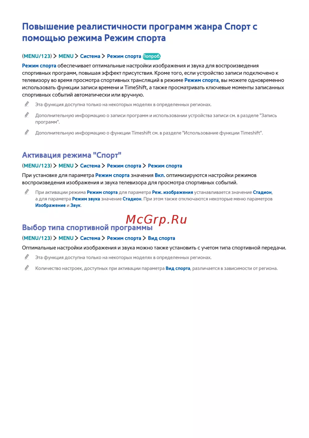 Режим спорта обеспечивает оптимальные настройки изображения и звука для воспроизведения