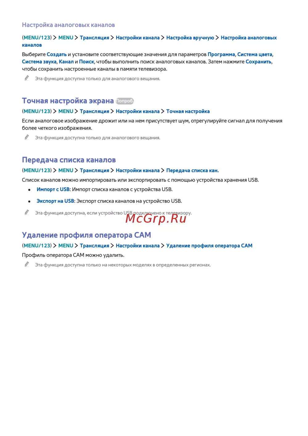 Узнайте, как настроить аналоговые каналы, выполнить точную настройку изображения и управлять списком каналов с помощью USB на вашем телевизоре.