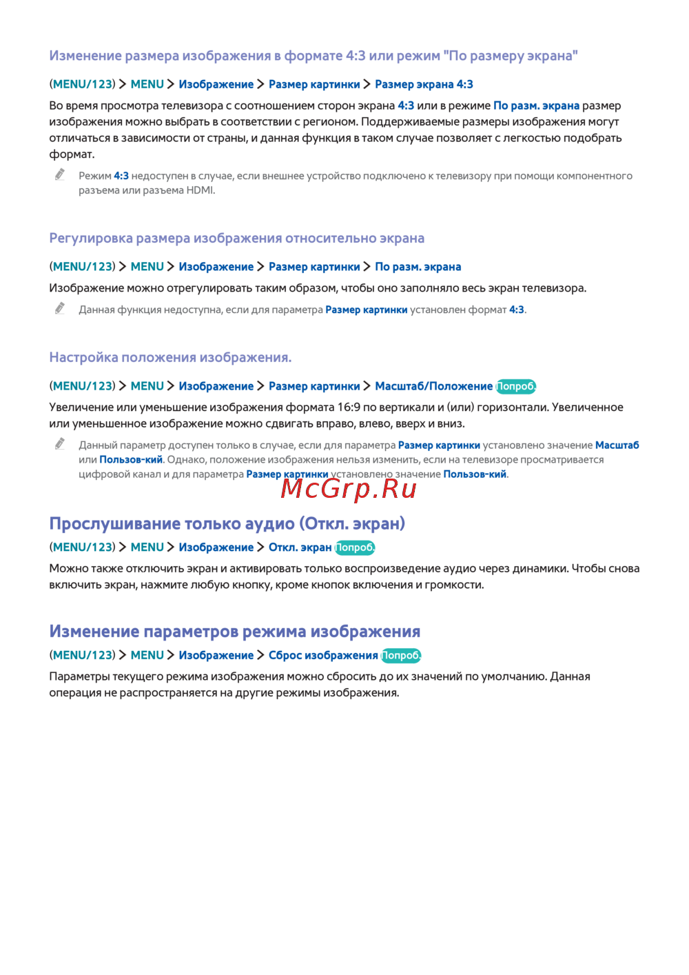 (MENU/123) MENU Изображение Размер картинки Размер экрана 4:3