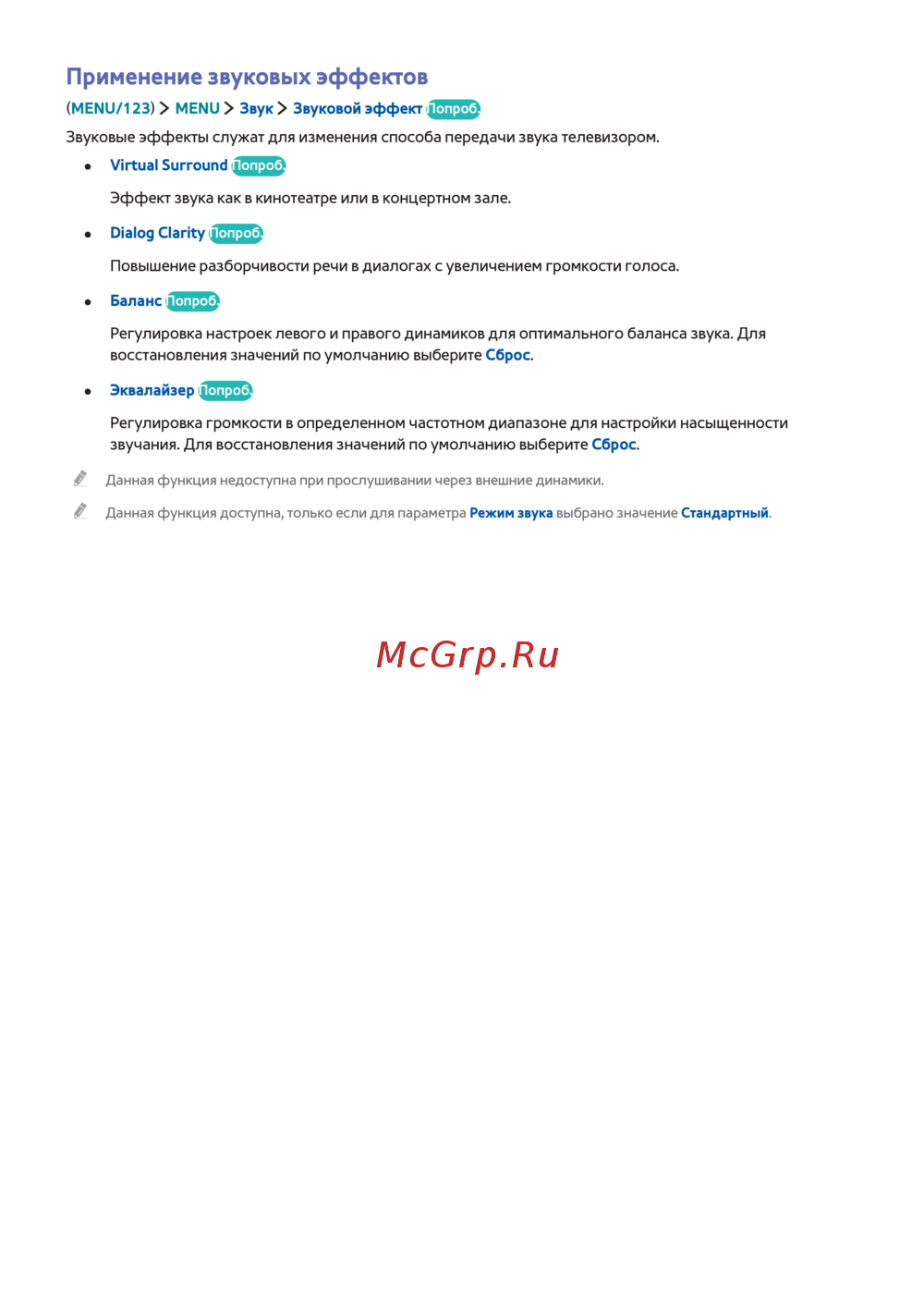Звуковые эффекты служат для изменения способа передачи звука телевизором.