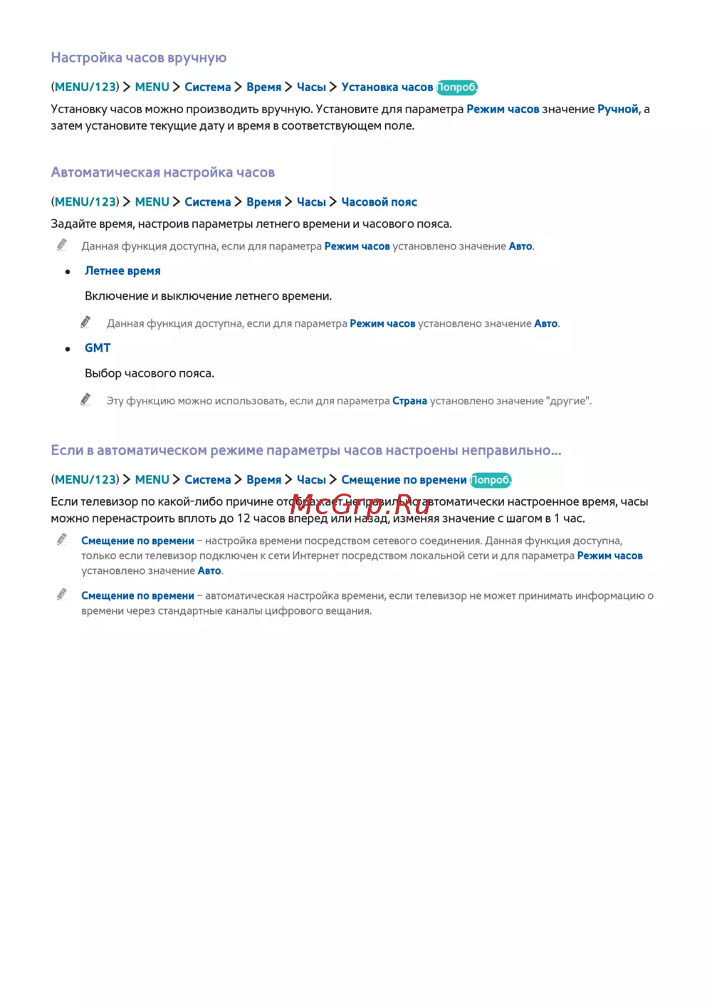 Если телевизор по какой-либо причине отображает неправильно автоматически настроенное время, часы